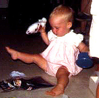 Believe it or not, I still remember that toy! It was a puppet football player that you could use your fingers to make its arms move. I have many fond memories of Steven pestering the cat with it!