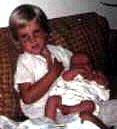 Once again Karen, Elizabeth’s oldest sister,was being displaced by yet another baby coming into her world. I was told that Karen couldn't stand the name “Elizabeth” and couldn’t understand why mom and dad would pick such an ugly name! My parents came to the conclusion that she was very upset about having yet another baby come into the house and get attention from her mommy and daddy! Here is Karen holding her new baby sister. (“They just keep on coming! I hope this is the last one.”)